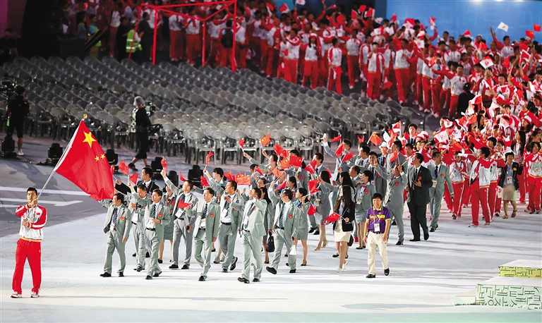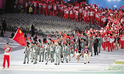 7月3日,2015年世界大学生夏季运动会在韩国光州开幕。图为中国代表团在开幕式上入场。 新华社发