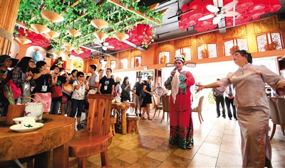 据了解,老街文化茶馆汇集火山口文化、骑楼文化、琼剧、八音等众多文化元素。同时,这里展现了海南四大名菜文昌鸡、加积鸭、东山羊、和乐蟹等在内的特色美食,成为市民游客品尝海南特色小吃的好去处。