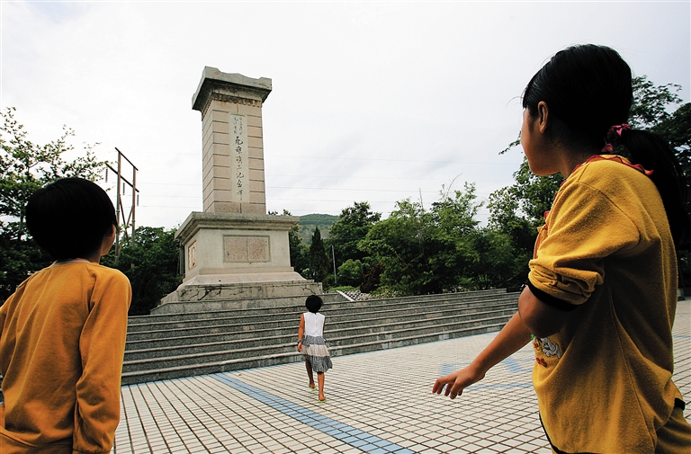 | 1989年,儋州雅星大沟村村民为遭日寇毒手的死难者树立纪念碑。 许春媚 陈超 摄 |