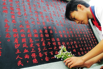 | 1941年农历四月,侵琼日军在澄迈县桥头镇沙土峒制造“沙土峒惨案”,残忍杀害1300多位村民。图为2005年9月,“沙土峒惨案”史证碑落成。海南日报记者 李英挺 摄 |