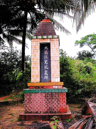 | 三亚市吉阳镇田独村“万人坑”纪念碑。日军对田独铁矿掠夺时,埋葬数万劳工。