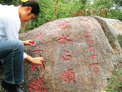 | 陵水县城南门岭上的一处摩崖石刻,记录了日军占领陵水的时间——1939年4月21日。 海南日报记者 陈耿 摄 |