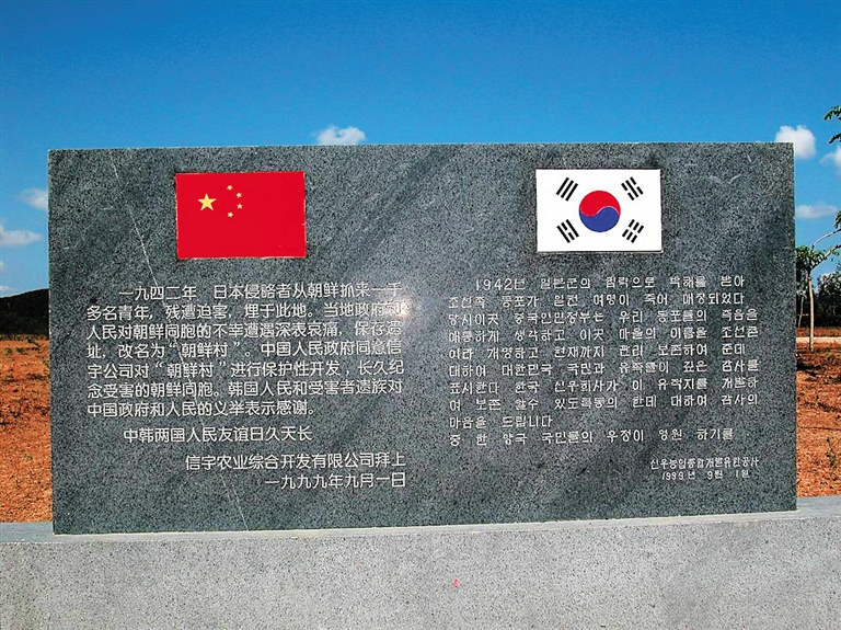 | 1999年,韩国商人徐在弘在三亚吉阳为日军侵琼时期遭受日寇毒手的同胞树立纪念碑。