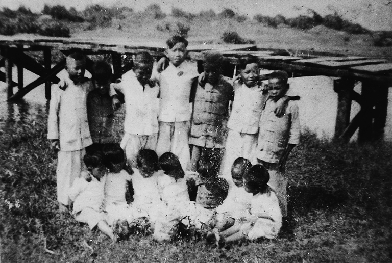| 1941年11月,独立总队第一支队特务连在琼山县树德乡吴氏祠堂成立,因有许多少年战士,被称为“少年连”。图为抗战时期琼崖抗日独立总队少年连的战士。 |