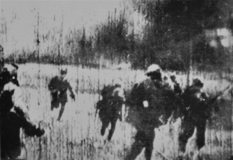 | 琼崖抗日独立总队第三大队在那大战斗中追击日军。 |