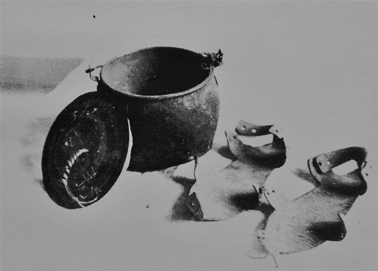 | 独立总队战士使用过的小铜罐和六带胶鞋。