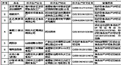 标示伪造、被注销及过期食品生产许可证号的预包装食品
