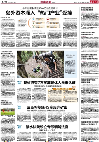 “立足生态立省、经济特区和国际旅游岛三大优势,我省正吸引越来越多的岛外企业投资海南旅游、互联网等重点领域。”省商务厅厅长叶章和表示,今年下半年我省将积极围绕12大产业进行招商,并做好项目落地服务工作等。