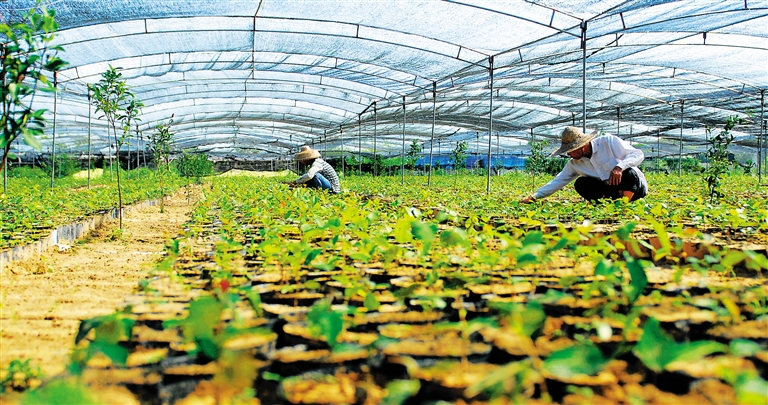 茶农透露,这种植物不仅可产绿色健康的食用油,很受市场欢迎,而且植物根系发达,不怕干旱,不怕台风,不怕雨涝,不怕严寒,不怕贫瘠,容易成活和管理,收获期可达上百年。琼海市绿化宝岛行动大力推动油茶种植,现在全市油茶种植达3万亩,其中20%已经生产上市。一株油茶树可产3斤茶油,去年全市茶油产值近1亿元。本报记者 苏建强 摄