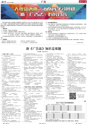 “大魏盛唐杯”海南省学习贯彻 新《广告法》有奖竞答