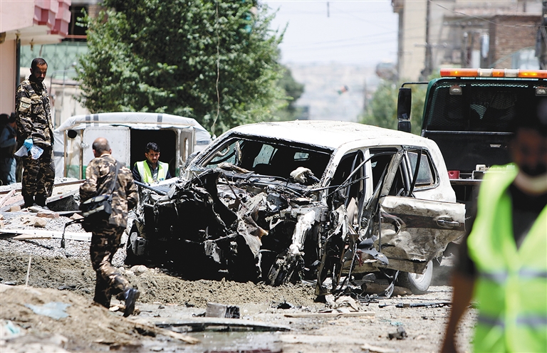 7月7日,在阿富汗喀布尔发生一起针对北约士兵的自杀式爆炸袭击,造成包括3名袭击者在内的4人死亡。 新华社发(艾哈迈德·马苏德摄)