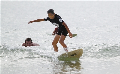 冲浪,也是近几年在海南逐渐兴起的一种海上运动。在万宁市的日月湾,已经成为国内外较为知名的冲浪胜地。为了培养孩子的自信心和锻炼孩子的体魄,很多来自大城市的家长都会在假期带着孩子来到日月湾,在冲浪俱乐部学习冲浪。在这种充满自由的海上运动中,无论是大人还是孩子,都能找到让自己充满快乐的理由。