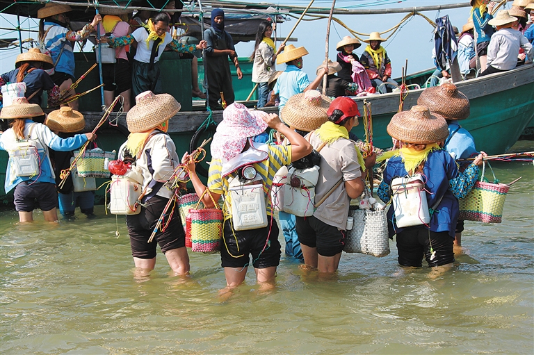 到海南旅游,不妨跟着当地有经验的渔民,一起去赶海,接受大海的馈赠,感受当地渔乡的生活气息。