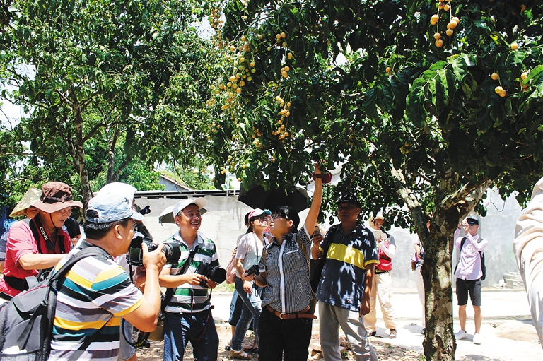 南吉村黄皮协会理事长符在明乐呵呵地说:“我们村里的黄皮园很热闹,从黄皮成熟以来的一个月里,单日自驾游的轿车排队长度不低于400米。”