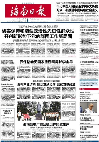 海南日报 头版 001 2015-07-081 2015年07月08日 星期三