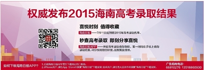 海南日报 ——7月11日起刊登2015年高考录取名单。