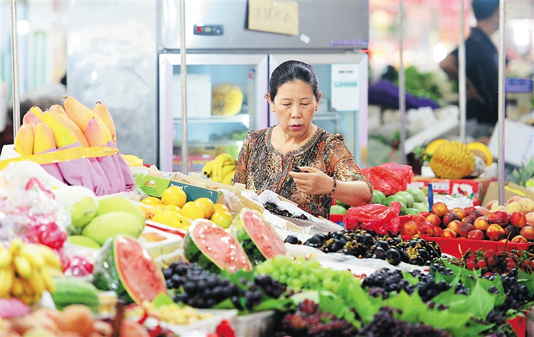 从各类商品及服务价格同比变动情况看,6月份食品价格同比上涨1.9%,影响CPI上涨约0.62个百分点。其中,鲜菜、肉禽及其制品、粮食价格分别同比上涨11.4%、3.6%和2.1%。同期,鲜果与蛋价下降8.8%和11.3%,分别影响CPI下降约0.22和0.1个百分点。
