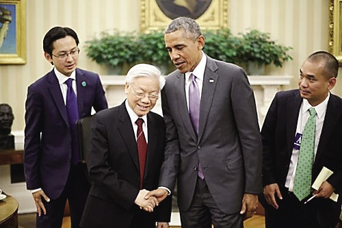 越美联合声明提到“尊重彼此的政治体制”。越南不可能对美国的政治体制构成威胁,但越南也一直高度警惕敌对势力对越搞“和平演变”、“颠覆暴乱”和“颜色革命”。美国政府邀请越共总书记正式访问,虽然没有给予红地毯、鸣礼炮、仪仗队、国宴等最高级别的国宾礼仪,但毕竟在白宫举行了历史性双边会晤。这应该可以解读为“美国对越共领导地位和体制的承认”。
