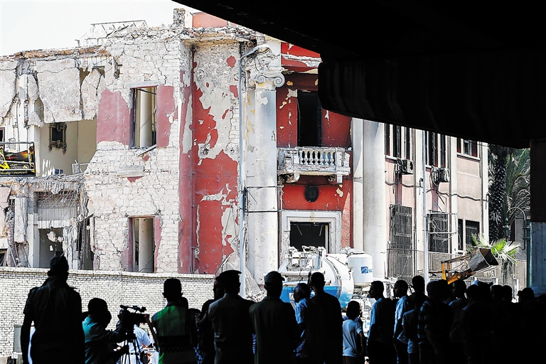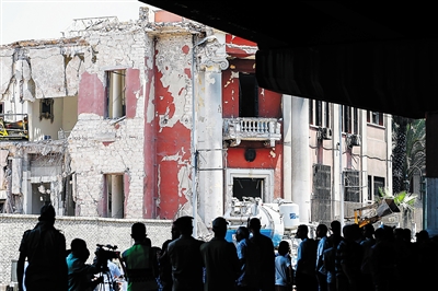 7月11日,埃及首都开罗,调查人员在发生爆炸的意大利领事馆旁展开工作。 位于埃及首都开罗的意大利领事馆外11日发生爆炸。据埃及卫生部声明,爆炸造成至少1人死亡、7人受伤。 新华社记者 崔新钰 摄