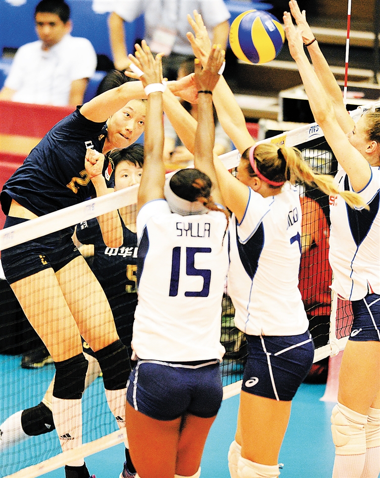 7月11日,在日本举行的世界女排大奖赛埼玉站比赛中,中国队以3:1战胜意大利队。 新华社发