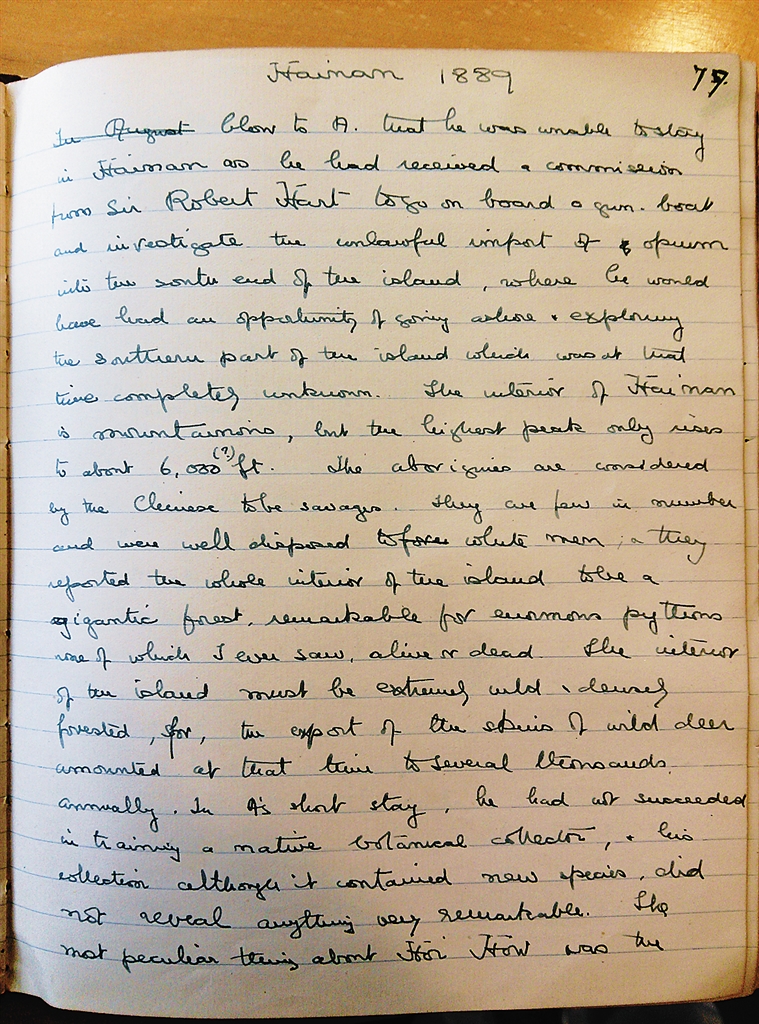 1889年3月,亨利被派往海南工作,这也意味着他的植物采集工作转移到了新的地方。前往海南岛是一次未知的探险,但对于植物采集者来说,去一个几乎未曾被探索过的地方往往也是一种巨大的期待。