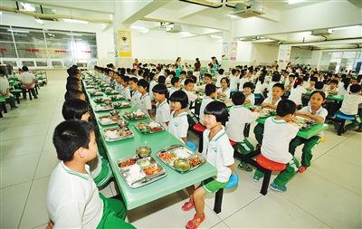 该校按酒店四星级标准装修餐厅,安装中央空调,实行自助点餐服务。目前学校具有中高级职称厨师10人,都具有营养师证,熟练掌握了营养配餐知识。