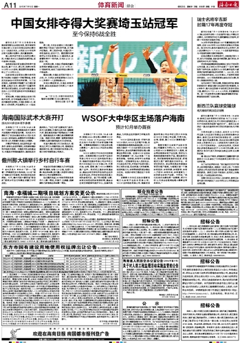 海南日报 体育新闻综合 011 2015-07-131 2015年07月13日 星期一