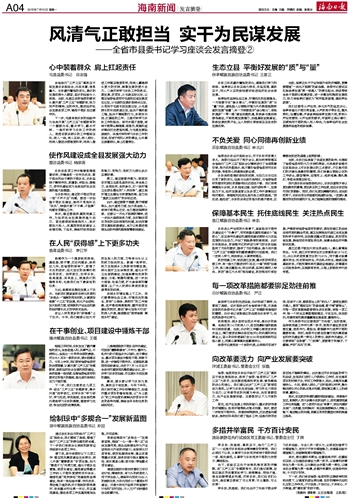 | 海南日报 海南新闻发言摘登 004 2015-07-131 2015年07月13日 星期一 |