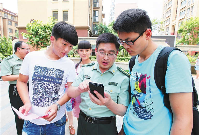 7月13日,在山东省滕州市龙泉街道,武装部干部利用微信平台向适龄青年宣传征兵政策。 据介绍,今年以来,山东省滕州市已有1400余名适龄青年通过网络平台报名入伍。