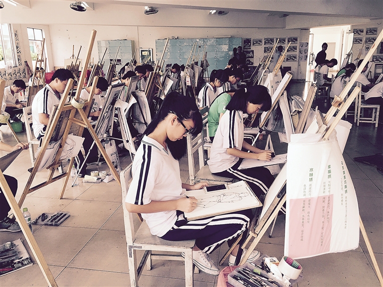 即使是现在,仍不断地有学生离开美术班,但也有更多的学生选择到美术班。学校发动学生学习美术的理由其实很简单:让文化课不理想的同学在美术班上看到上大学的希望。