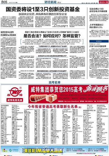 海南日报 财经新闻综合 013 2015-07-141 2015年07月14日 星期二