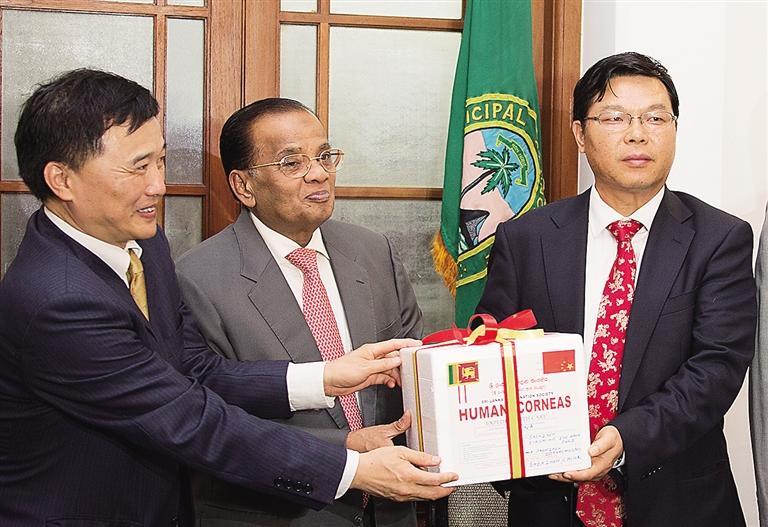 斯里兰卡国际眼库相关负责人Janath Saman Matara Arachchi介绍,近些年来,斯里兰卡合计向中国捐赠约2000枚眼角膜,使众多中国眼疾病人重获光明,其中也给海南人民捐赠了若干枚眼角膜。与此同时,中国医疗队通过“中斯友好光明行”活动,已经为斯里兰卡1000名白内障患者实施了免费的复明手术。两国友好交往佳话再次在“一带一路”战略实施过程中续写。