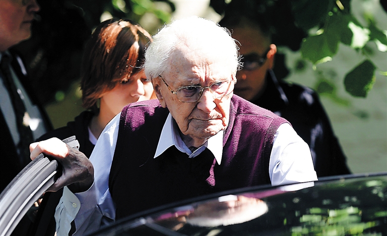 7月15日,在德国下萨克森州吕内堡市,奥斯卡·格伦宁准备乘车离开法庭。 德国下萨克森州吕内堡市地方法院15日判处前纳粹党卫军成员、曾于二战期间在波兰奥斯威辛集中营担任记账员的奥斯卡·格伦宁4年监禁。格伦宁现年94岁,健康状况不佳。在判决正式生效前,法院需检测他的健康状况是否适合监禁。 新华社/法新