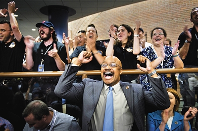 美国航天局的电视直播画面显示,聚集在约翰斯·霍普金斯应用物理实验室的科学家们终于等来了“新视野”号探测器回传的信号。“我们确认飞跃冥王星(任务)成功,”任务团队在推特网站宣布。