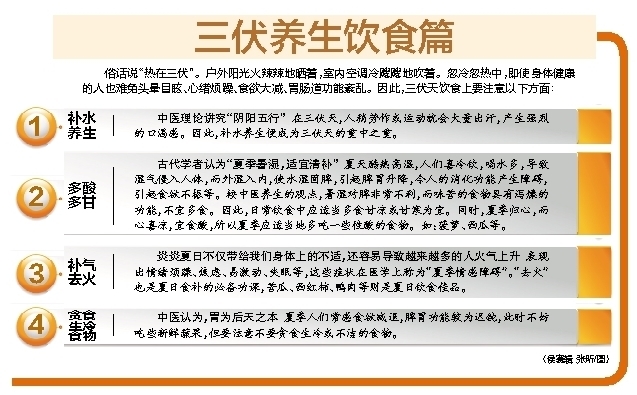 暑邪耗气伤津,有人认为三伏天更应进补。王德认为,这种观念是不科学的,三伏天应慎进补、重调养。