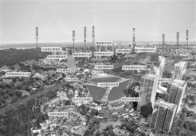 恒大集团更斥巨资改造近4万亩沙坡白水塘湿地公园环绕项目,项目自身打造45万平的世界级航母配套,涵盖超13万m2商业综合体、16万m2国际商务集群、6万m2六国风情酒店、4万m2超五星白金酒店、1.6万m2五国特色温泉馆、7400m2国际会议中心、7600m2全能运动中心、9800m2世界风情美食街、900m2八国风情酒吧街、1100m2博物馆等汇集文化旅游、商业会展、办公教育、运动康体、养生度假、休闲娱乐及生态居住等为一体的超规模、全业态、全功能的世界级文化旅游度假样板。