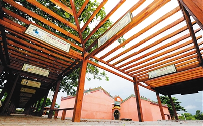 7月14日,在海口市秀英区永兴镇美孝火山文化旅游区游客服务中心,部分工程已建好。美孝火山石古村落旅游开发项目是海口在建的省重点工程项目,目前进展顺利,项目投资基本完成序时进度。 本报记者 陈元才 摄