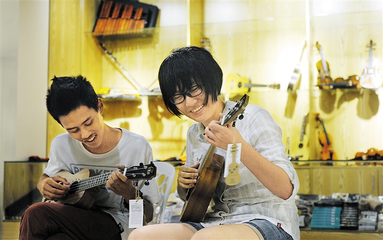 7月15日下午,在海口市海府路美人鱼琴行,一男一女两位少年用吉他弹着二重奏,一起唱着欢快的《童年》。当人们得知这两位竟然分别是今年海南高考文、理科第一名时,都惊呆了。