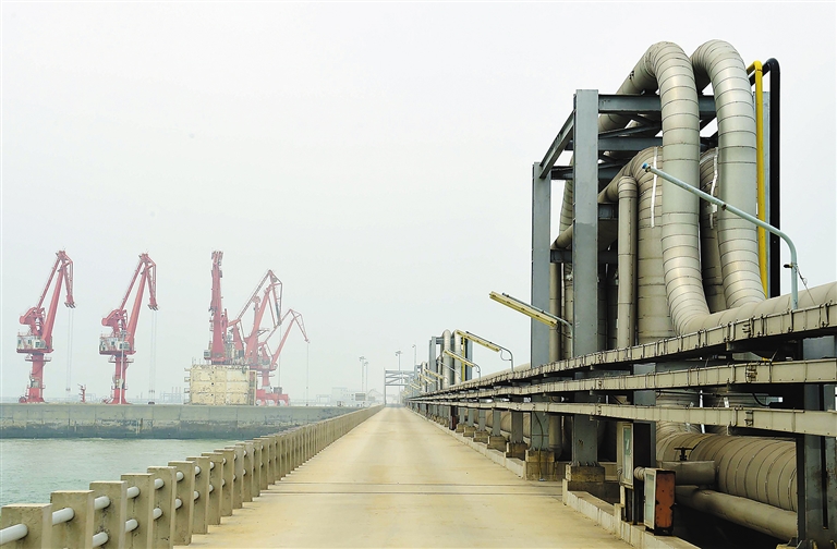 为实现液体化工品从港口到企业的无缝对接,东营港建成了30公里的公共管廊带工程(7月17日摄)。 位于黄河三角洲高效生态经济区的东营港经济开发区,立足胜利油田石油资源丰富、化工产业聚集等优势,打造以液体化工品为主的东营港,并投资18亿元配套建设30公里公共管廊带工程,实现了码头-库区-企业的全管道封闭联通,提升了港口作业效率,降低了企业物流成本。截至目前,东营港吞吐能力已达3000万吨,成为环渤海地区最大的油品和液体化工品特色港口。