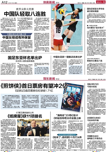 海南日报 体育新闻综合 012 2015-07-181 2015年07月18日 星期六