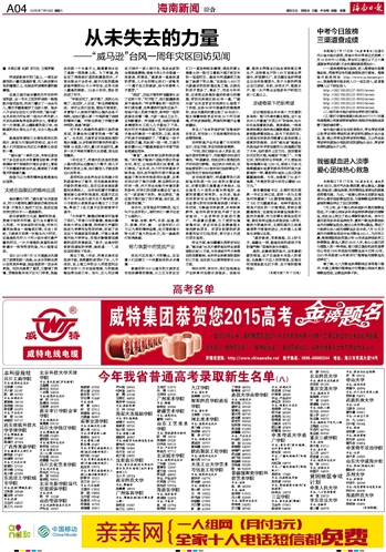 第005版:超强台风“威马逊”袭琼一周年特别报道