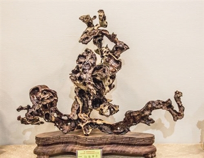 放眼展厅,在 “‘追寻中国梦’——第四届海南省根雕艺术作品展”中展出的其他作品,余秀燕的《松揽瑞雪》、吴关诗的《月影荷下舞》等也一样尽力释放着艺术魅力,彰显着当前海南根雕艺术创作的新水平。