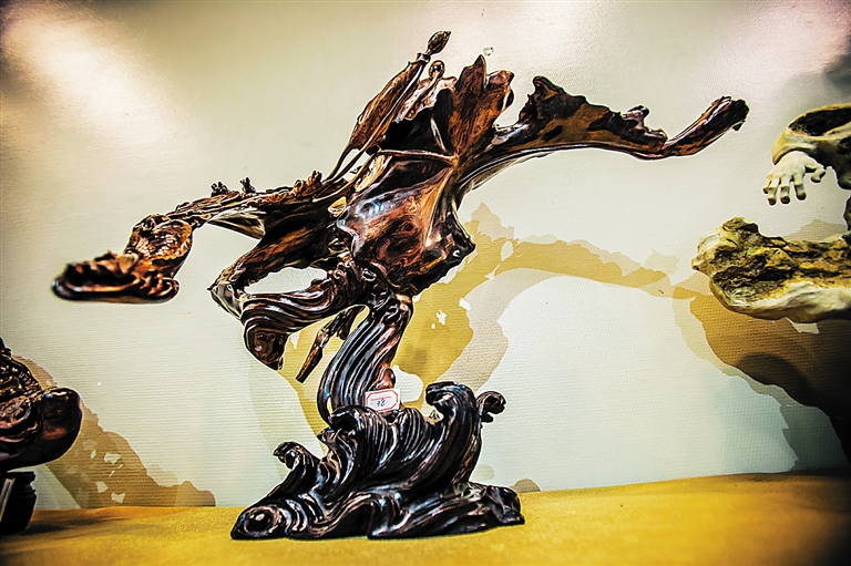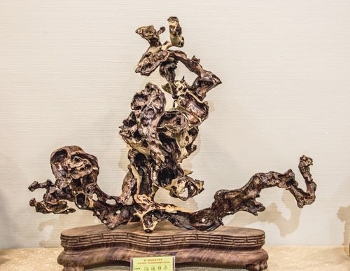 这是海南省根雕文化艺术协会会长张进山的根雕作品《神曲》,其摒弃传统创作的局限性,大胆发挥创新构思。在技法造型上推陈出新,令观赏者魂牵梦萦,感受美感难于忘怀。