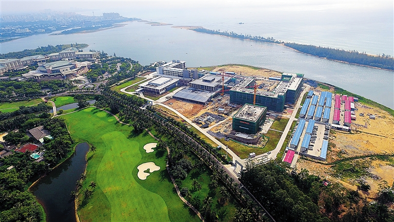 7月18日,琼海市博鳌镇东屿岛上的博鳌亚洲论坛永久会址二期项目加紧建设。据悉,为改善博鳌亚洲论坛办会条件,中远集团投资8.5亿元新建的博鳌亚洲论坛永久会址二期项目,将实现2016年一地办会的目标,该项目总用地面积180亩,建筑面积6.65万余平方米。
