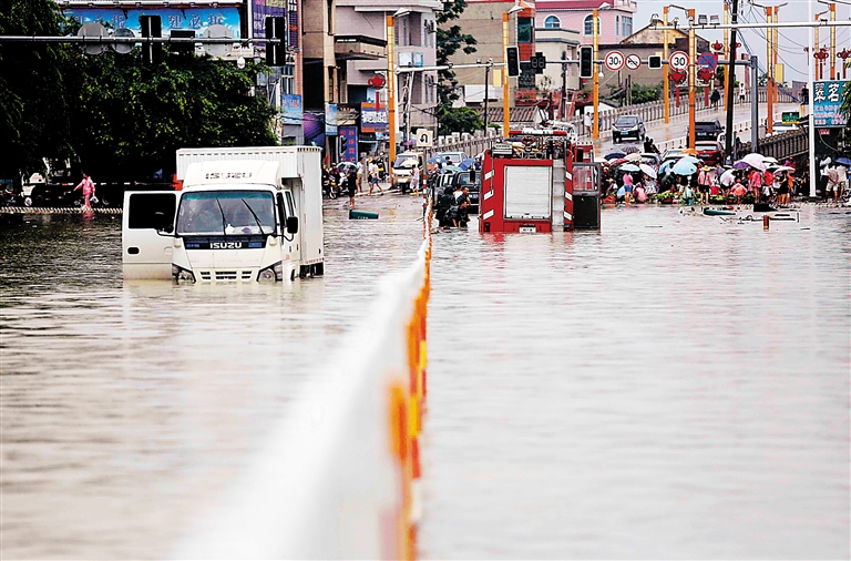 据了解,八所城区永安西路、东府路、解放西路、解放东路、三角公园一带等多个地段积水严重,影响市民出行。受暴雨影响,城区出现大面积停电。东方市住建、消防、预备役、边防等有关部门全力开展抢险、转移群众工作。
