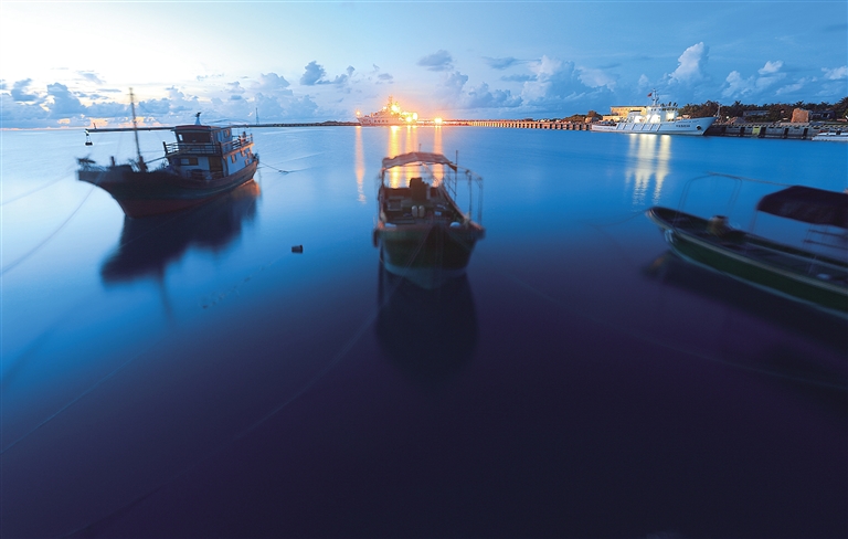 而在1992年9月17日早晨,同是乘船踏浪而来,陈贻爱看到的永兴岛码头,只有被一条岸堤分成的两个泊位,码头边停靠着几艘小渔船。