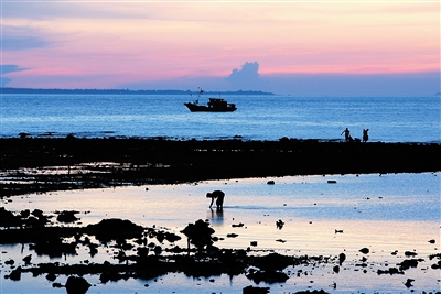 在海南,几乎每一片海滩都能成为赶海的好去处。在很多海南人的记忆中,退潮时的赶海应该是童年记忆中最为快乐的事情了。当潮水退去,一些贝类、螃蟹、小海鱼等便搁浅在沙滩上或礁石中。赶海的人们拎着桶,或者腰间别着篓,拿上铲子,或者光靠手,就能捡到不少新鲜的海货。