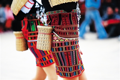 在什寒村里,极具黎苗风情的民居,就那么一家一户地沿着村道分散着。望向围墙内的庭院,也许能看到头戴靓丽苗族头饰的妇女们正拉着家常绣苗绣。这些绣娘们刺绣从不打底稿,也没有草图,全凭从长辈们那里学到的技艺和自己的悟性,数着底布上的经纬线挑绣。在这些心灵手巧的苗族妇女手下,一幅幅色彩艳丽图案丰富的头巾慢慢成形。发现你好奇的目光,她们会向你投来羞涩而友善的笑容。