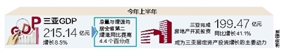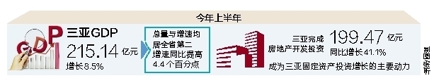 第三产业是三亚经济的传统强项,所占比例在60%以上,去年上半年三亚GDP增速之所以仅4.1%,很大原因就是第三产业增速为0。三亚调结构就从第三产业入手。据介绍,三亚持续扶持发展会展旅游、婚庆旅游、低空旅游等新业态,“三亚—博鳌”包机航线、海棠湾低空观光航线等一批旅游新产品投入运营,上半年旅游总收入增速“跑赢”接待游客人次增速,实现了旅游业旺丁又旺财。与此同时,三亚推进了俄罗斯、新加坡、韩国等国际航线开通,逐渐扭转了入境游的颓势。