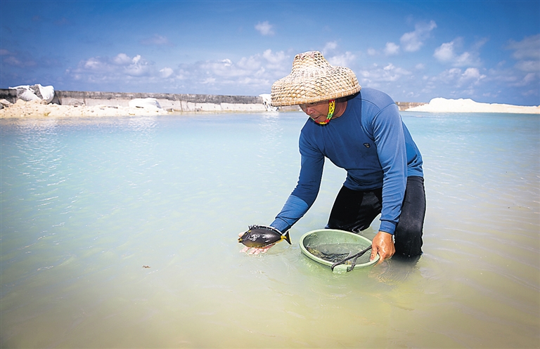 在这些岛礁中,要数七连屿工委下辖的赵述岛上居住的渔民人数最多,常住的近200多名居民中,多是以捕鱼作业为主。他们常常潜入七连屿的海域中捕获海参、法螺、鲍鱼、龙虾,以及各种经济鱼类和贝类等。